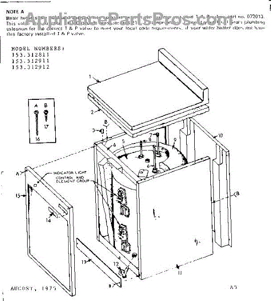 Parts for Kenmore 153.312912 (153312912, 153 312912): Non-Functional Replacement Parts