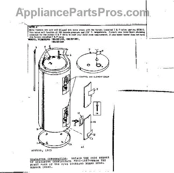 Parts for Kenmore 153.321381 (153321381, 153 321381): Non-Functional Replacement Parts