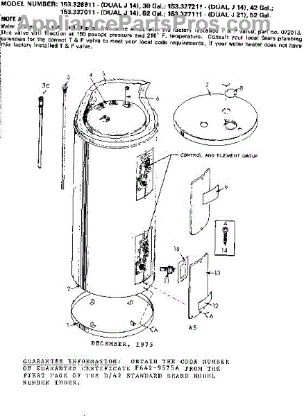 Parts for Kenmore 153.327011 (153327011, 153 327011): Non-Functional Replacement Parts