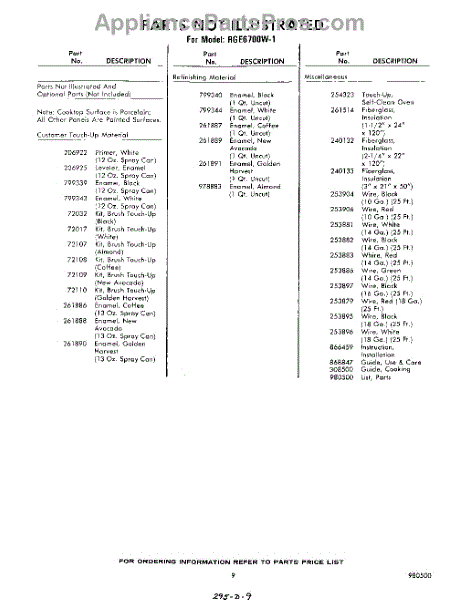 Parts for Whirlpool RGE6700W1: 09 - Not Illustrated , Lit / Optional Parts