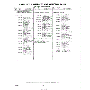 Parts for Whirlpool EHT181AKWR1: 12 - Parts Not Illustrated And Optional Parts