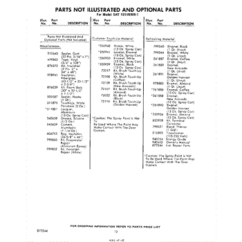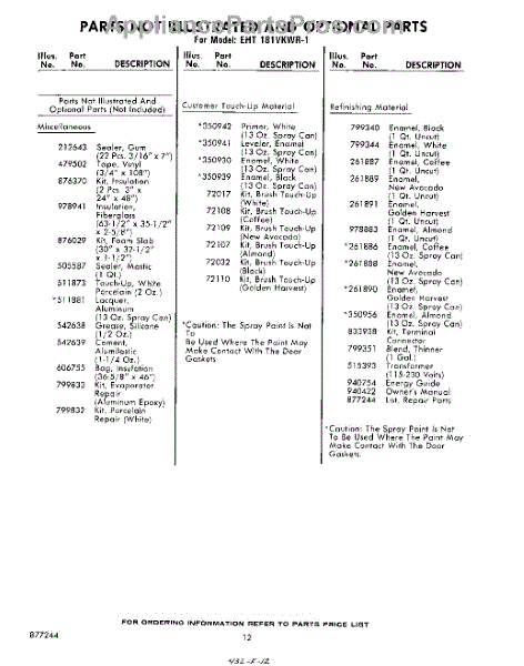 Parts for Whirlpool EHT181VKWR1: 12 - Parts Not Illustrated And Optional Parts