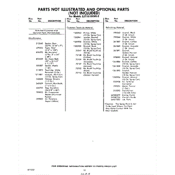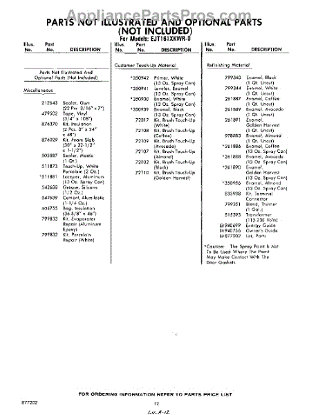 Parts for Whirlpool EJT161XKWR0: 12 - Not Illustrated And Optional Parts