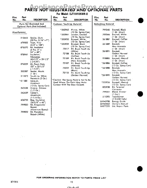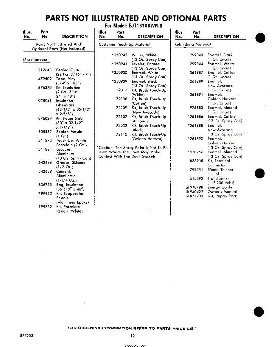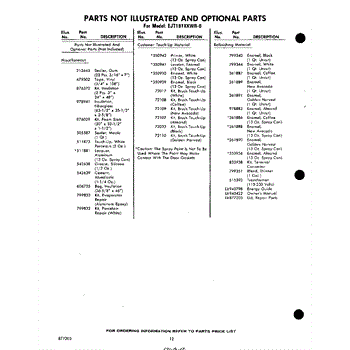 Parts for Whirlpool EJT181XKWR0: 12 - Not Illustrated And Optional Parts