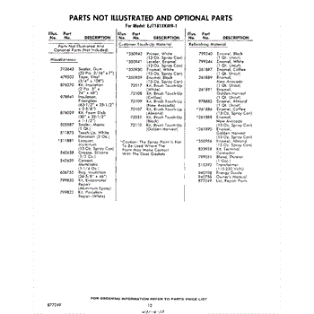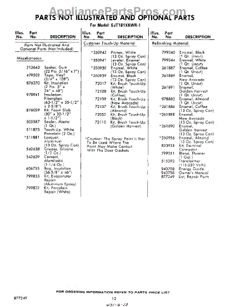 Parts for Whirlpool EJT181XKWR1: 12 - Not Illustrated And Optional Parts