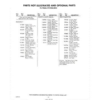 Parts for Whirlpool ET161EKLWR0: 12 - Not Illustrated And Optional Parts