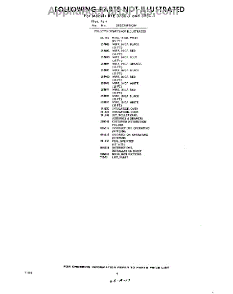 Parts for Whirlpool RYE39802: 04 - Parts Not Illustrated Parts