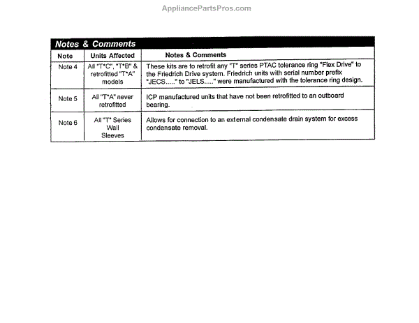 Parts for Friedrich TEC12K50: Notes And Comments Parts