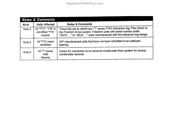 Parts for Friedrich THC09R25: Notes And Comments Parts