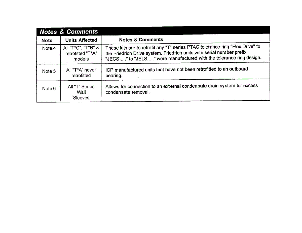 Parts for Friedrich THC12K25: Notes And Comments Parts