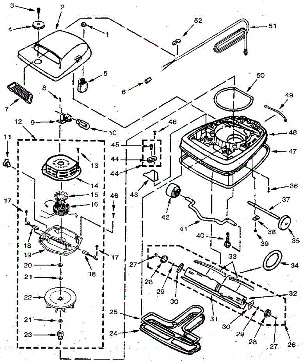 Parts for Eureka 2320A: Nozzle And Motor Assembly Parts