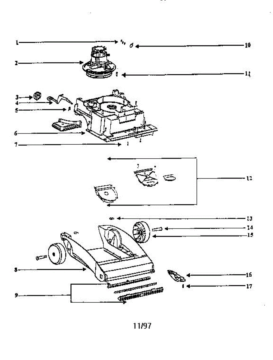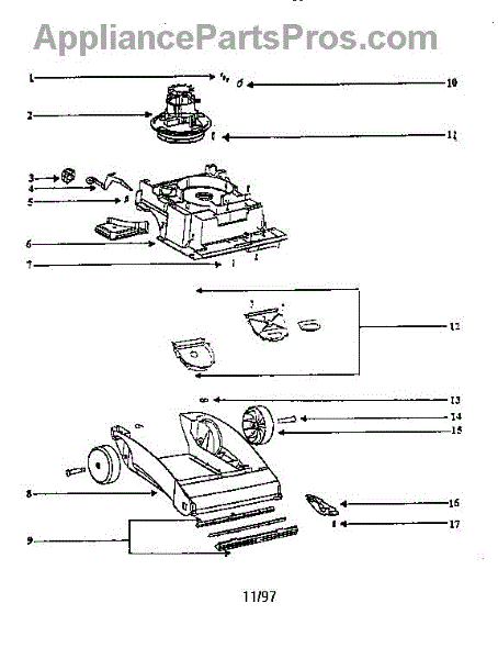 Parts for Eureka 2430B-1: Nozzle And Motor Assembly Parts