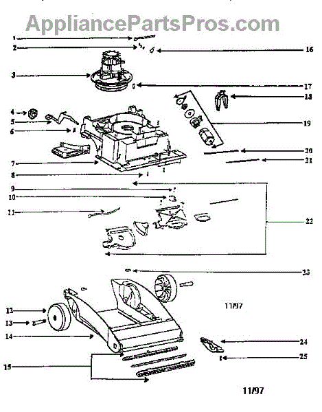 Parts for Eureka 2440AT-2: Nozzle And Motor Assembly Parts