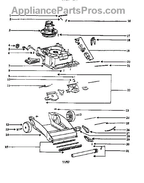 Parts for Eureka 2450A-2: Nozzle And Motor Assembly Parts