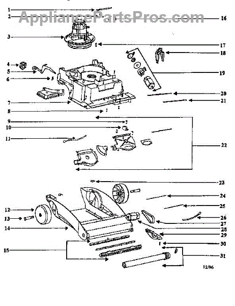 Parts for Eureka 2450AT-1: Nozzle And Motor Assembly Parts