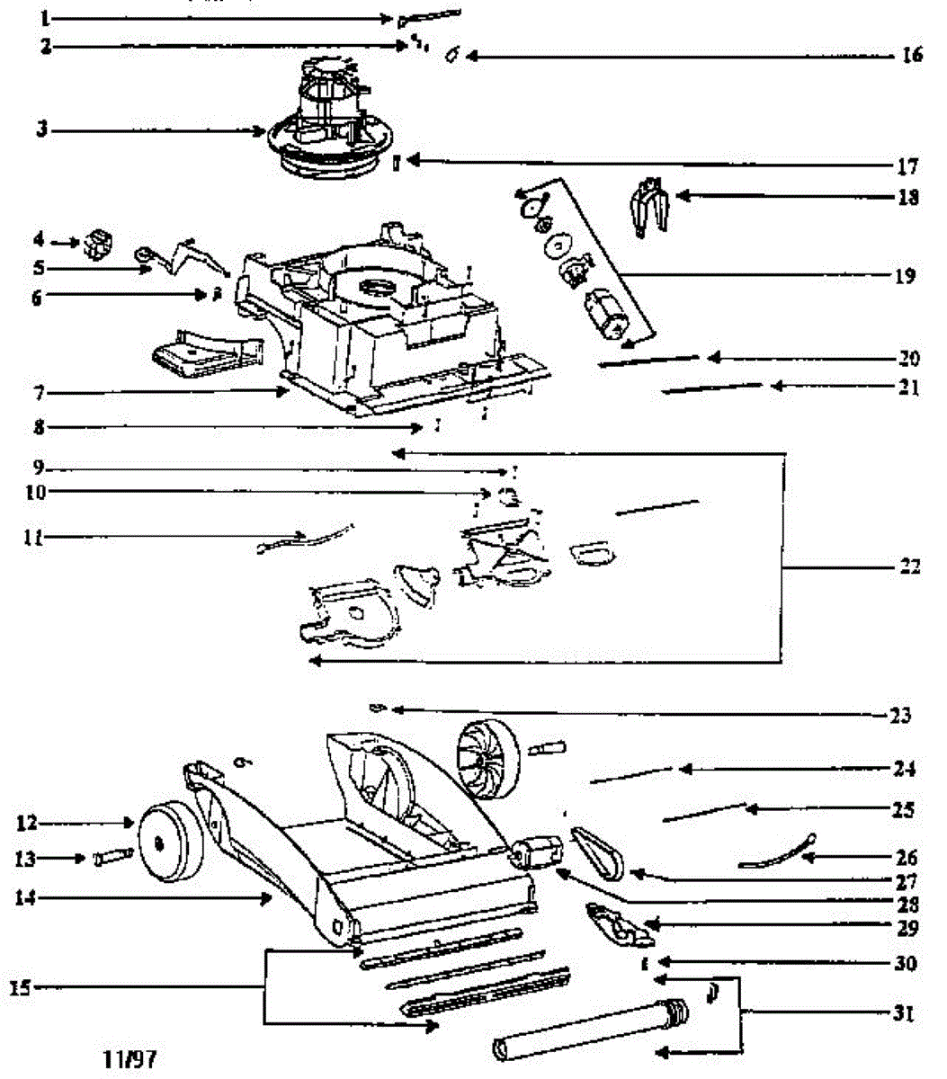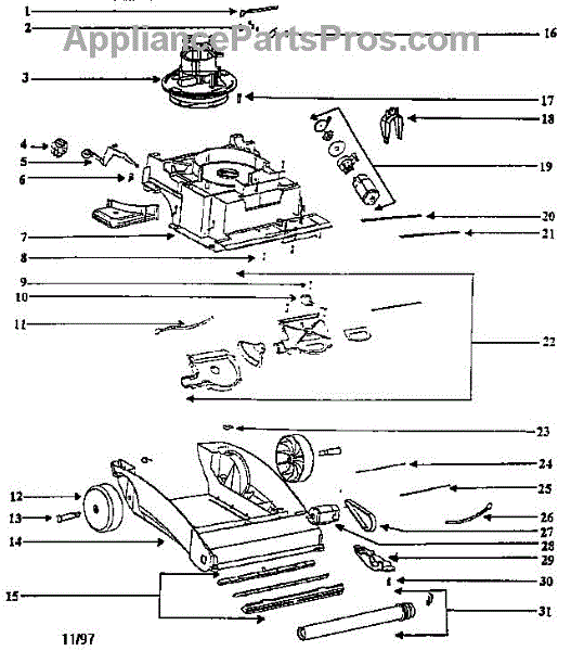 Parts for Eureka 2450B: Nozzle And Motor Assembly Parts