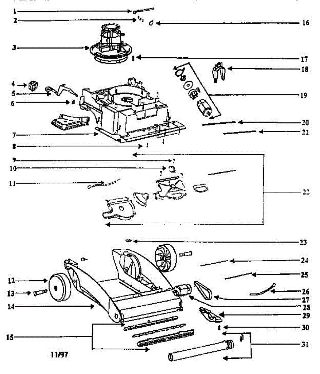 Parts for Eureka 2450BTN-1: Nozzle And Motor Assembly Parts