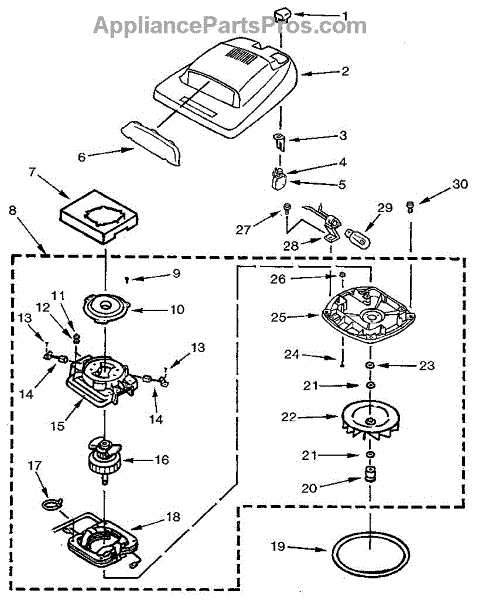 Parts for Eureka 4034A: Nozzle And Motor Assembly Parts