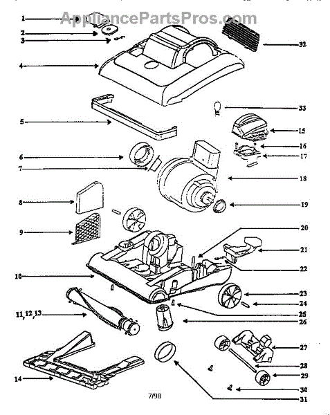 Parts for Eureka 7650ATH: Nozzle And Motor Assembly Parts