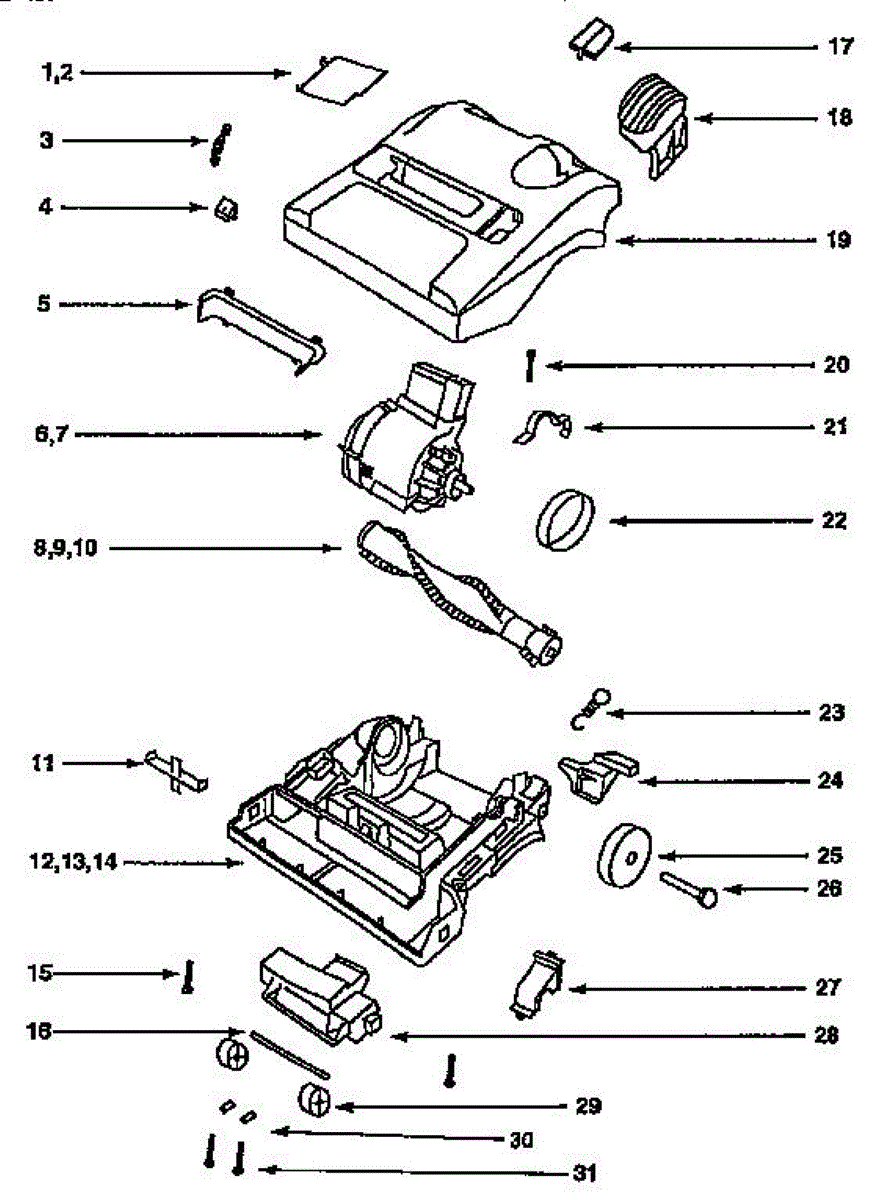 Parts for Eureka 9202E/ET: Nozzle And Motor Assembly Parts