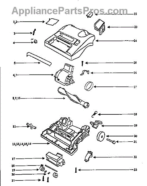 Parts for Eureka 9334DTX: Nozzle And Motor Assembly Parts