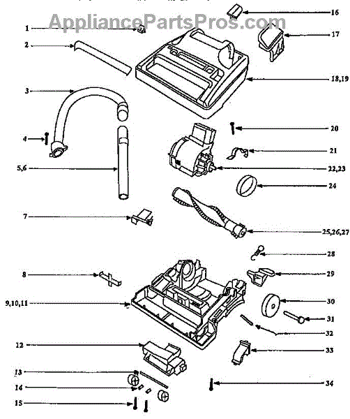 Parts for Eureka 9855BTH: Nozzle And Motor Assembly Parts