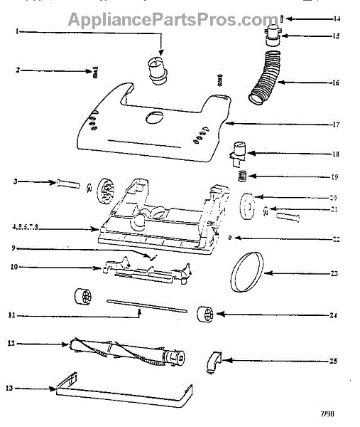 Parts for Eureka AU4465BT: Nozzle And Motor Assembly Parts