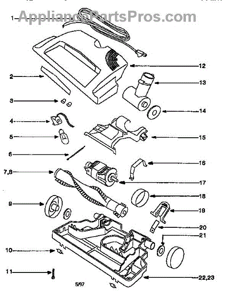 Parts for Eureka CV190A: Nozzle And Motor Assembly Parts