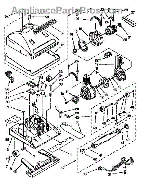 Parts for Kenmore 116.3035590C (1163035590C, 116 3035590C): Nozzle And Motor Parts