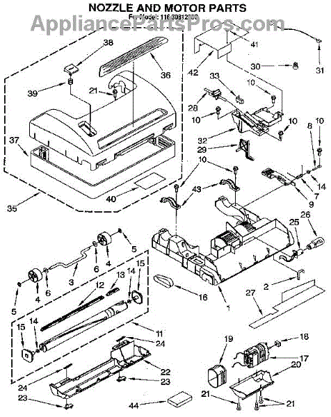 Parts for Kenmore 116.3081290C (1163081290C, 116 3081290C): Nozzle And Motor Parts