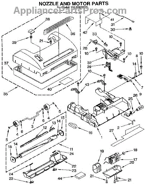 Parts for Kenmore 116.3082390C (1163082390C, 116 3082390C): Nozzle And Motor Parts