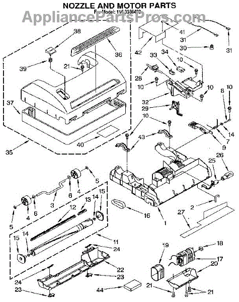Parts for Kenmore 116.3369490 (1163369490, 116 3369490): Nozzle And Motor Parts