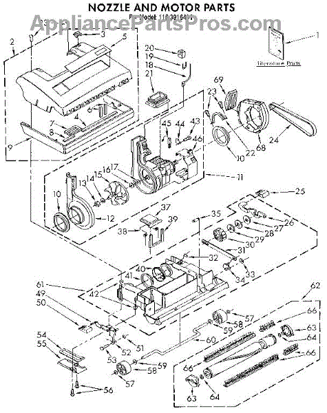 Parts for Kenmore 116.3916481 (1163916481, 116 3916481): Nozzle And Motor Parts