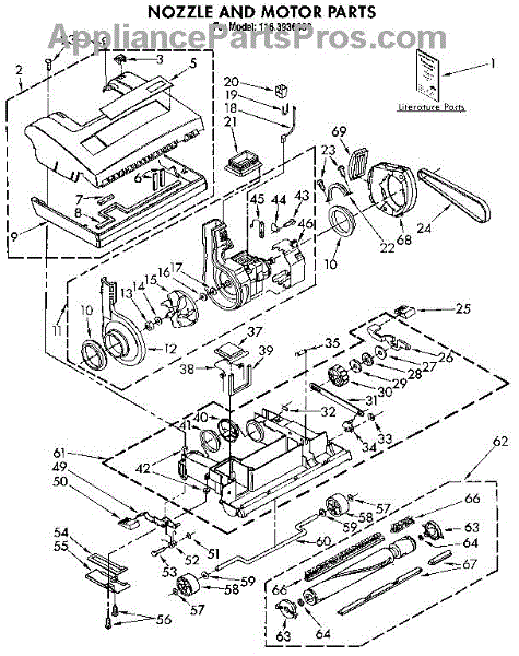 Parts for Kenmore 116.3936080 (1163936080, 116 3936080): Nozzle And Motor Parts