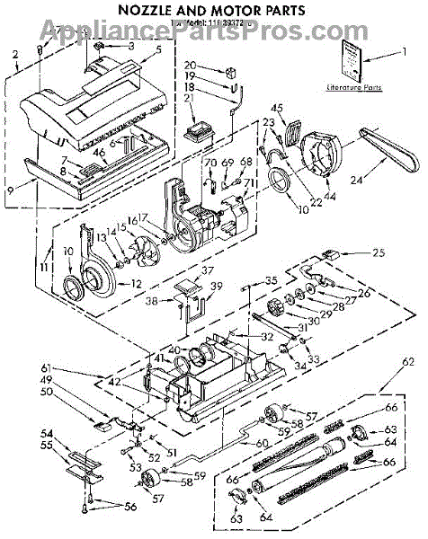 Parts for Kenmore 116.3937280 (1163937280, 116 3937280): Nozzle And Motor Parts