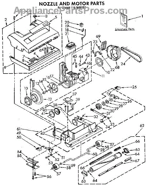 Parts for Kenmore 116.3966184 (1163966184, 116 3966184): Nozzle And Motor Parts