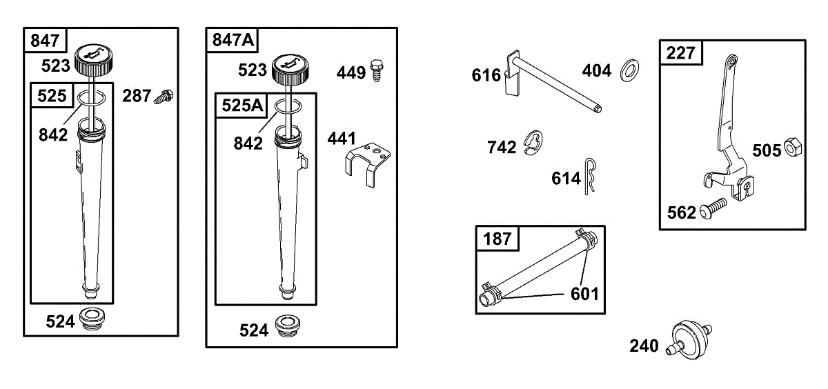 Parts for Briggs & Stratton 288702-1108-E1: Oil Fill, Controls Parts