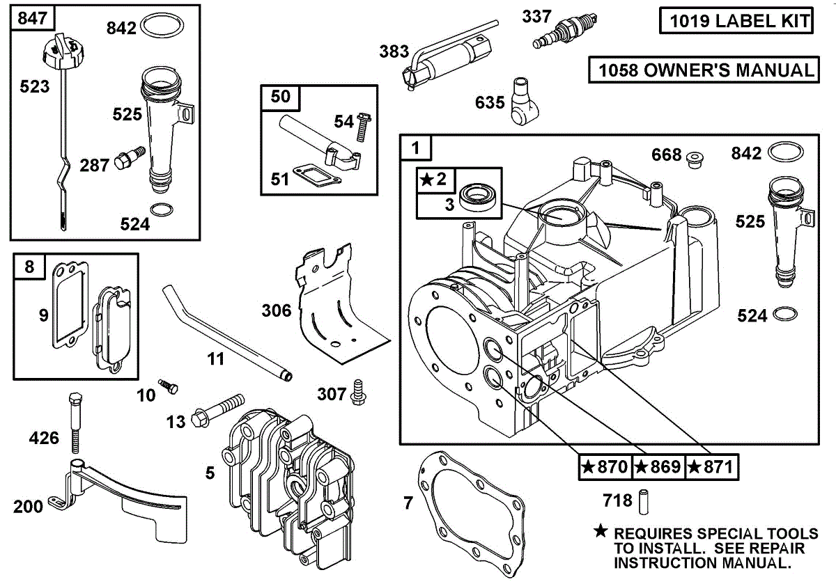 Parts for Briggs & Stratton 10C902-2037-B1: Oil Fill, Head, Cylinder Assembly Parts