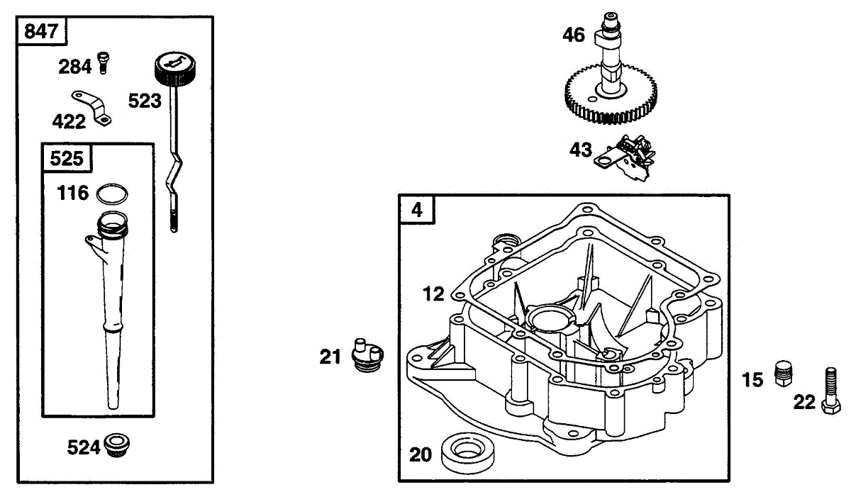 Parts for Briggs & Stratton 256702-0132-01: Oil Fill, Sump Parts