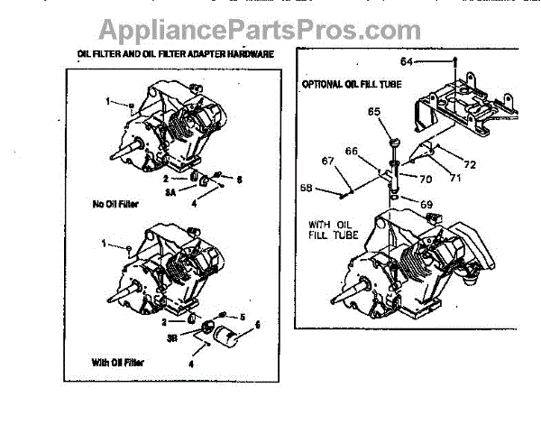 Parts for Generac GN190: Oil Fill Tube And Oil Filter Parts