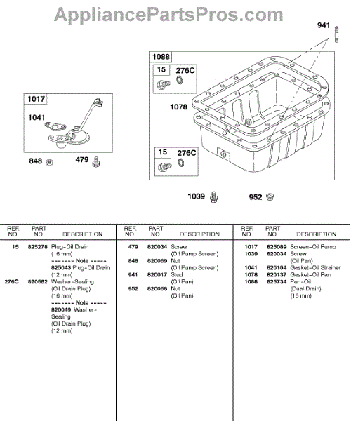 Parts for Briggs & Stratton 433447-0317-E2: Oil Pan, Oil Pump Screen Parts