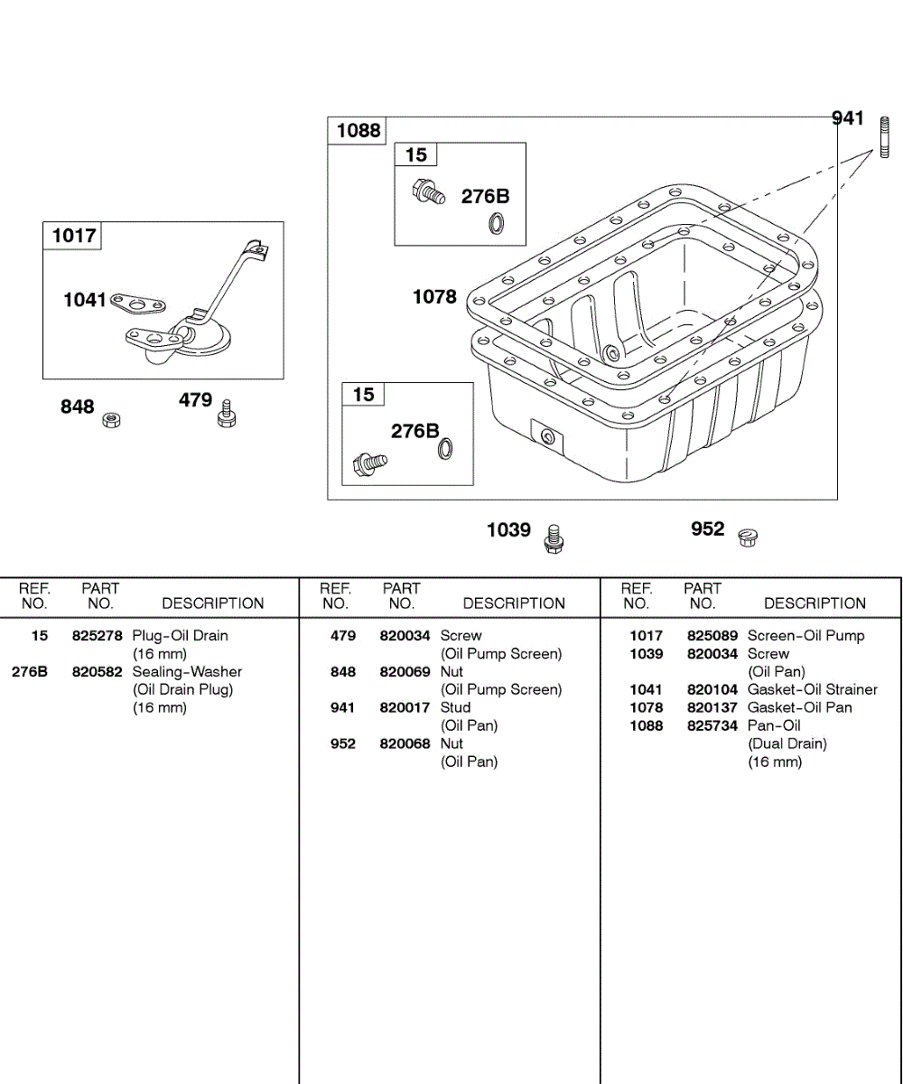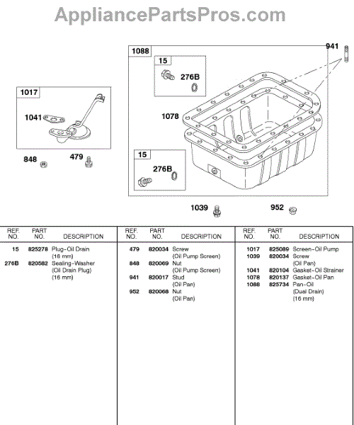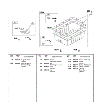 Parts for Briggs & Stratton 437447-0205-E2: Oil Pan, Oil Pump Screen Parts