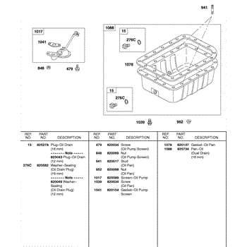 Parts for Briggs & Stratton 580447-0105-E1: Oil Pan, Oil Strainer Parts
