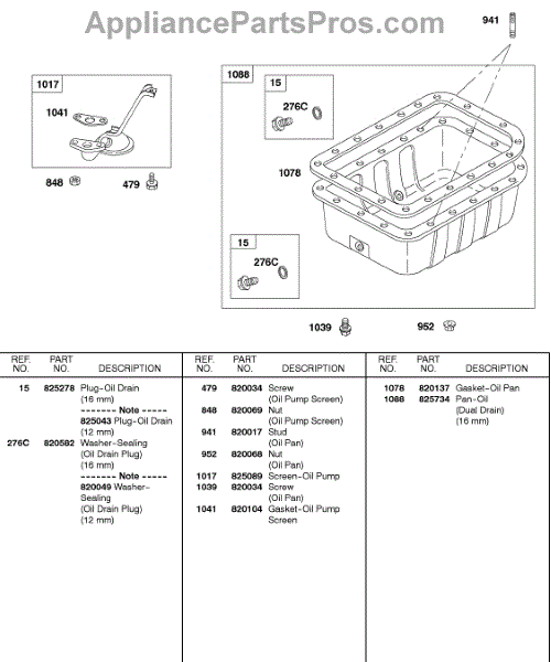 Parts for Briggs & Stratton 580447-0225-E2: Oil Pan, Oil Strainer Parts