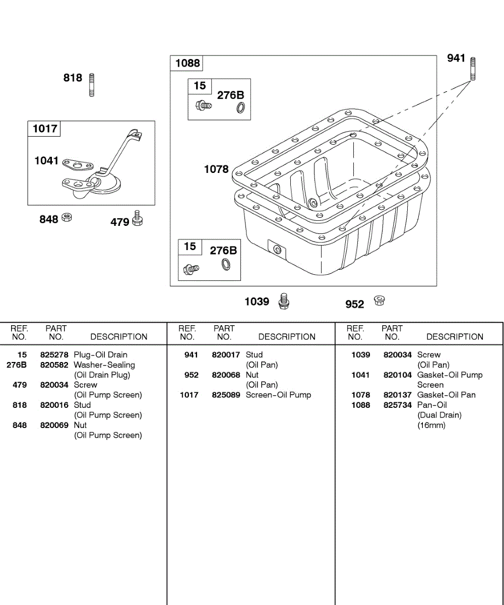 Parts for Briggs & Stratton 583447-0317-E2: Oil Pan, Oil Pump Screen Parts