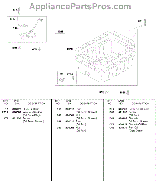 Parts for Briggs & Stratton 58A447-0201-E2: Oil Pan, Oil Pump Screen Parts