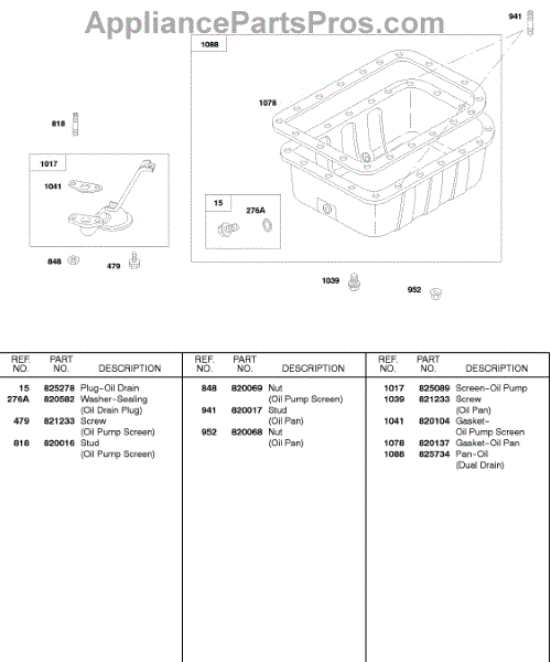Parts for Briggs & Stratton 522447-0406-E2: Oil Pan Parts