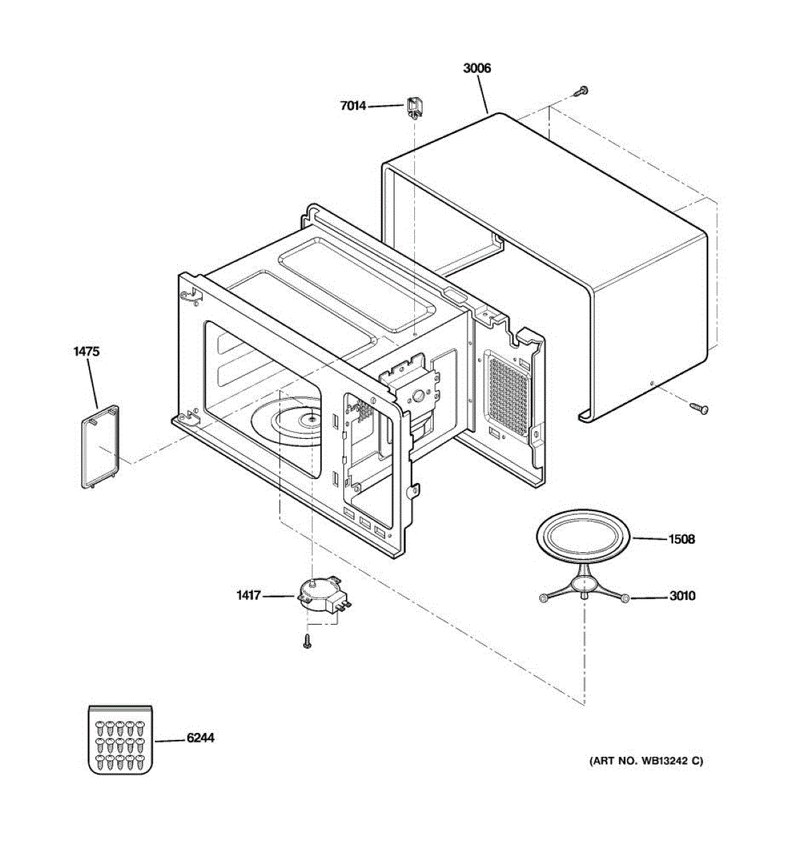 This molded resin cover is a protective plastic shield used inside the microwave. It helps protect internal components and ducting from splatter and debris and restores a secure, finished fit when the original cover is cracked or missing. What it does: