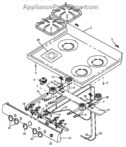 Parts for Caloric RMN381UW/P1143087NW: Open Top Burner Assembly (Rln330uw / P1143073nw) (Rln340ul / P1143074nl) (Rln340uw / P1143074nw) (Rln340vl / P1143075nl) (Rln340vw / P1143075nw) (Rln345ul / P1143076nl) (Rln345uw / P1143076nw) (Rln347ul / P1143077nl) (Rln347uw / P1143077nw) (Rln362ul / P1143078nl) (Rln362uw Parts