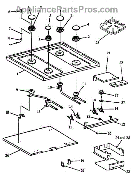 For top surface burners. Configuration: 2 + 0.